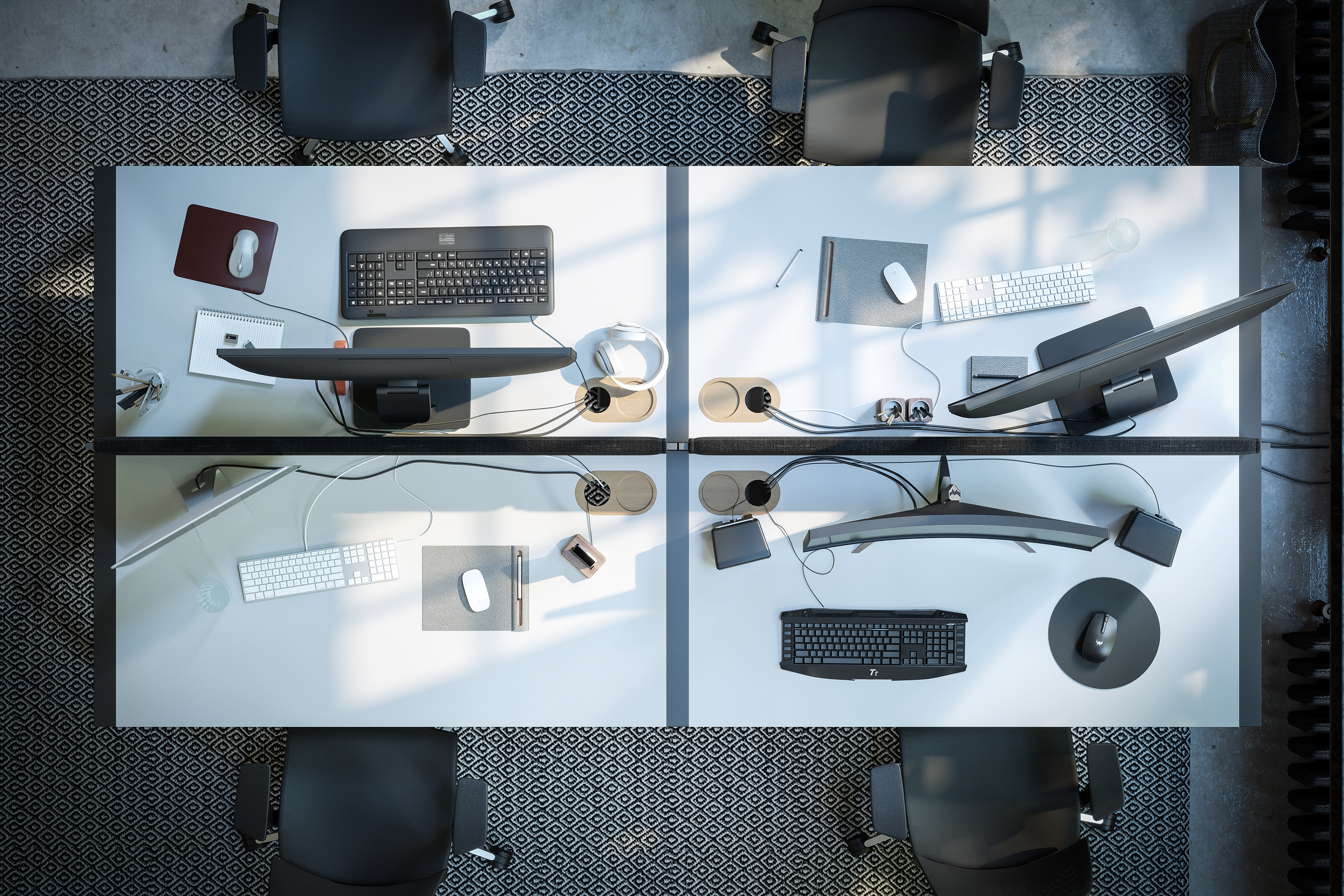 Wizualizacje nowej kolekcji do katalogu mebli biurowych FORMO. Projekt - NEED Studio
