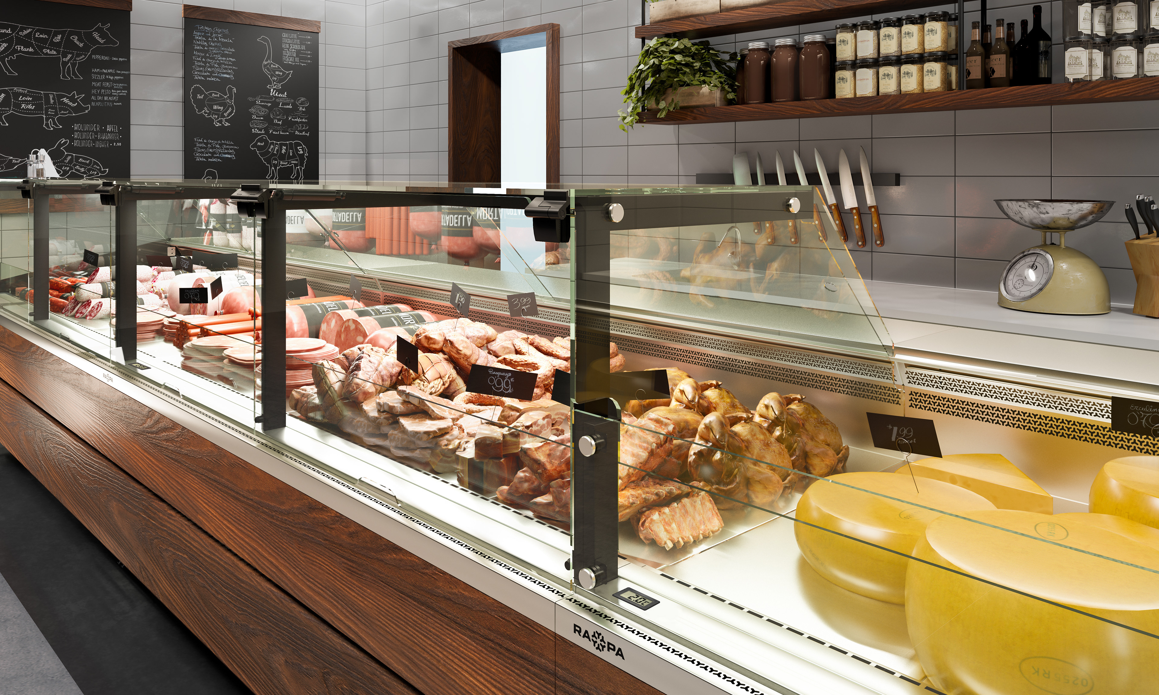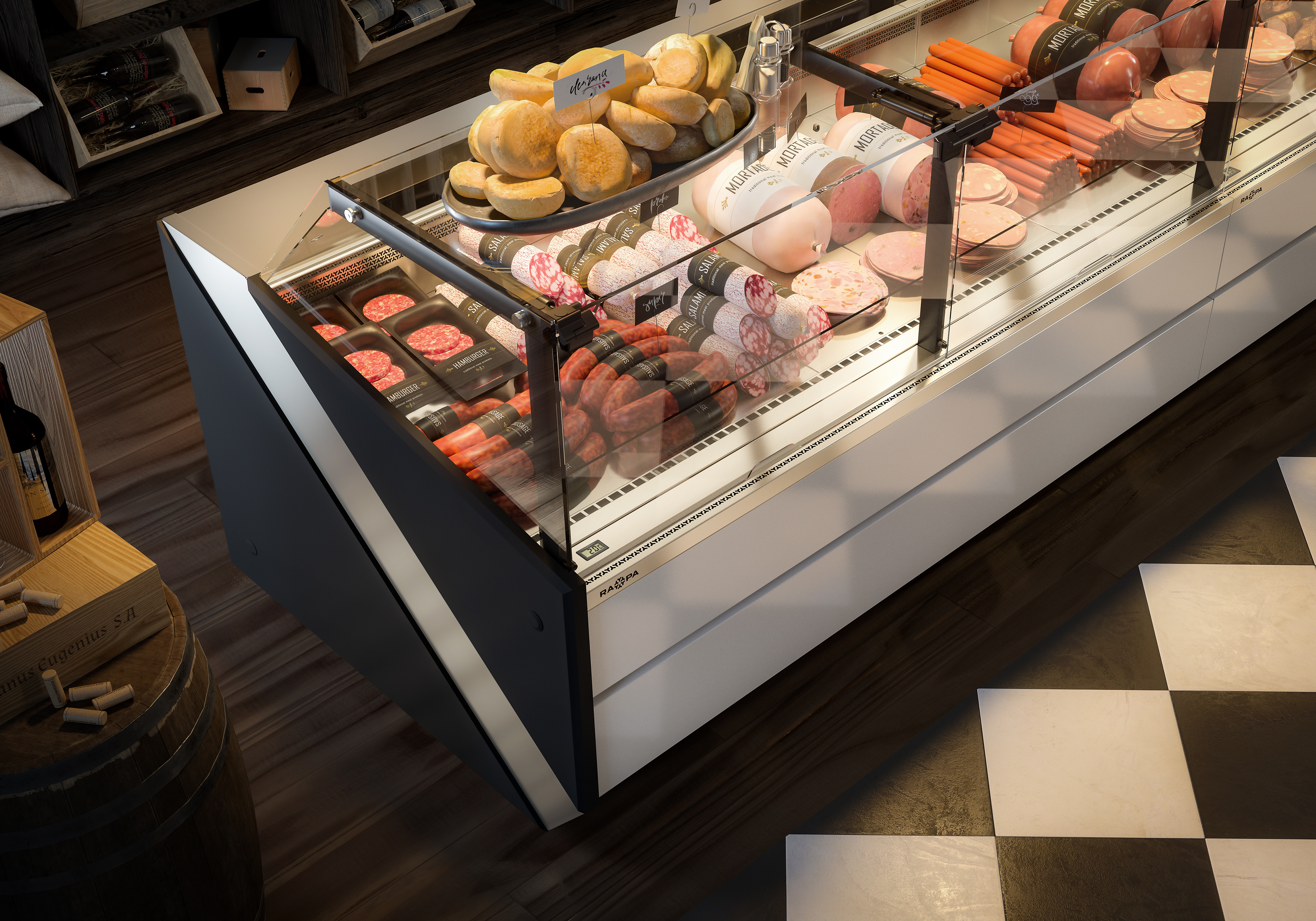 Wizualizacje pokazujące zastosowanie nowej linii urządzeń chłodniczych "Seria X" firmy RAPA.